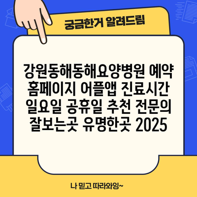 강원동해동해요양병원 예약 홈페이지 어플앱 진료시간 일요일 공휴일 추천 전연락 잘보는곳 유명한곳 2025 에 대해 자주 묻는 질문 TOP 5