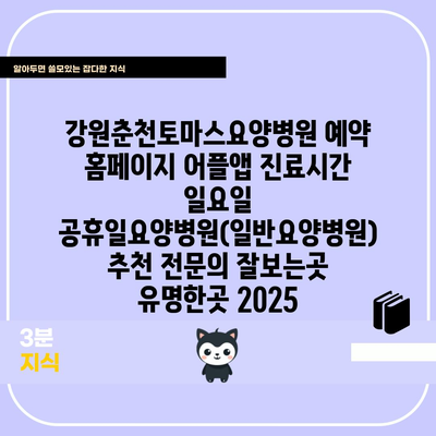 강원춘천토마스요양병원 예약 홈페이지 어플앱 진료시간 일요일 공휴일요양병원(일반요양병원) 추천 전연락 잘보는곳 유명한곳 2025 에 대해 자주 묻는 질문 TOP 5
