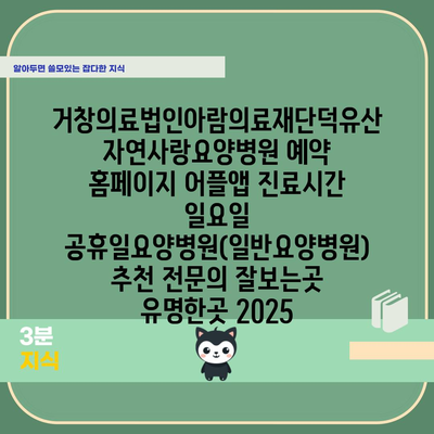 거창의료법인아람의료재단덕유산자연사랑요양병원 예약 홈페이지 어플앱 진료시간 일요일 공휴일요양병원(일반요양병원) 추천 전연락 잘보는곳 유명한곳 2025 에 대해 자주 묻는 질문 TOP 5