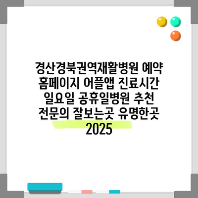 경산경북권역재활병원 예약 홈페이지 어플앱 진료시간 일요일 공휴일병원 추천 전연락 잘보는곳 유명한곳 2025 에 대해 자주 묻는 질문 TOP 5