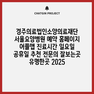 경주의료법인소양의료재단 서울요양병원 예약 홈페이지 어플앱 진료시간 일요일 공휴일 추천 전연락 잘보는곳 유명한곳 2025 에 대해 자주 묻는 질문 TOP 5