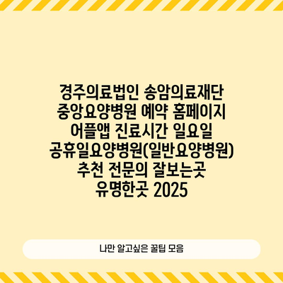 ✅ 경주 송암의료재단 중앙요양병원 예약 방법을 알아보세요.