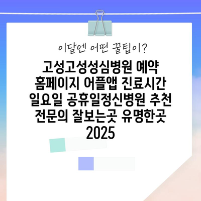 ✅ 고성고성성심병원의 진료시간과 예약 방법을 쉽게 알아보세요.