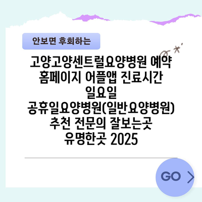 고양고양센트럴요양병원 예약 홈페이지 어플앱 진료시간 일요일 공휴일요양병원(일반요양병원) 추천 전문의 잘보는곳 유명한곳 2025