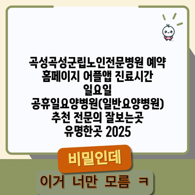 ✅ 곡성군립노인전문병원 예약 방법과 진료시간을 쉽게 알아보세요.