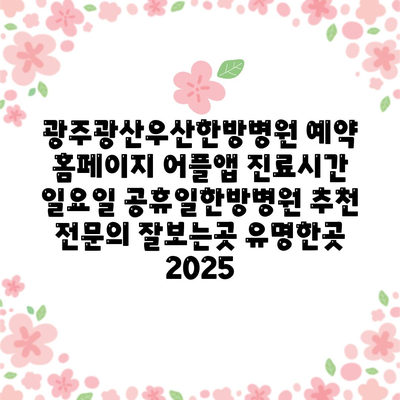 광주광산우산한방병원 예약 홈페이지 어플앱 진료시간 일요일 공휴일한방병원 추천 전연락 잘보는곳 유명한곳 2025 에 대해 자주 묻는 질문 TOP 5