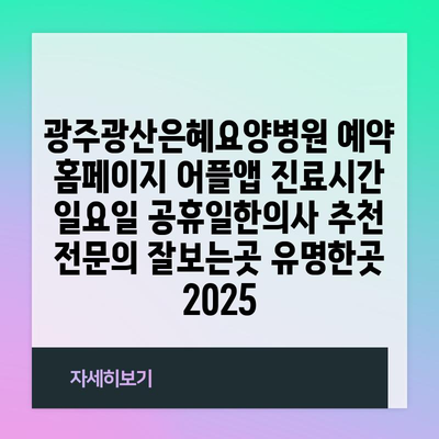 광주광산은혜요양병원 예약 홈페이지 어플앱 진료시간 일요일 공휴일한의사 추천 전연락 잘보는곳 유명한곳 2025 에 대해 자주 묻는 질문 TOP 5