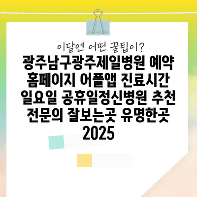 광주남구광주제일병원 예약 홈페이지 어플앱 진료시간 일요일 공휴일정신병원 추천 전연락 잘보는곳 유명한곳 2025 에 대해 자주 묻는 질문 TOP 5