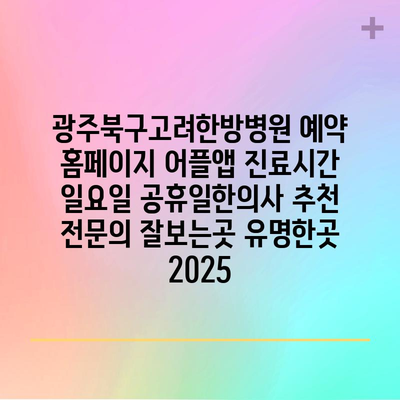 광주북구고려한방병원 예약 홈페이지 어플앱 진료시간 일요일 공휴일한의사 추천 전연락 잘보는곳 유명한곳 2025 에 대해 자주 묻는 질문 TOP 5