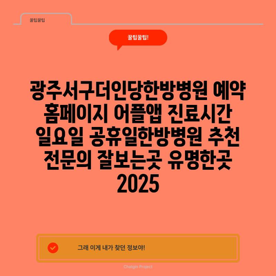 ✅ 광주서구더인당한방병원의 진료시간과 예약 방법을 지금 확인해 보세요.