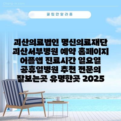 괴산의료법인 명신의료재단 괴산서부병원 예약 홈페이지 어플앱 진료시간 일요일 공휴일병원 추천 전연락 잘보는곳 유명한곳 2025 에 대해 자주 묻는 질문 TOP 5