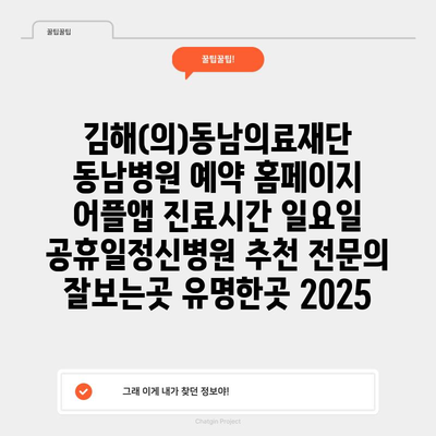 김해(의)동남의료재단 동남병원 예약 홈페이지 어플앱 진료시간 일요일 공휴일정신병원 추천 전연락 잘보는곳 유명한곳 2025 에 대해 자주 묻는 질문 TOP 5