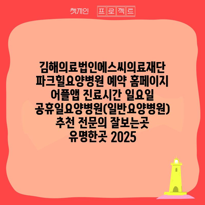 김해의료법인에스씨의료재단 파크힐요양병원 예약 홈페이지 어플앱 진료시간 일요일 공휴일요양병원(일반요양병원) 추천 전연락 잘보는곳 유명한곳 2025 에 대해 자주 묻는 질문 TOP 5