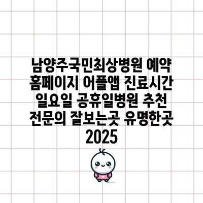 남양주국민최상병원 예약 홈페이지 어플앱 진료시간 일요일 공휴일병원 추천 전연락 잘보는곳 유명한곳 2025 에 대해 자주 묻는 질문 TOP 5