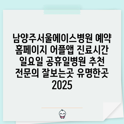 남양주서울에이스병원 예약 홈페이지 어플앱 진료시간 일요일 공휴일병원 추천 전연락 잘보는곳 유명한곳 2025 에 대해 자주 묻는 질문 TOP 5
