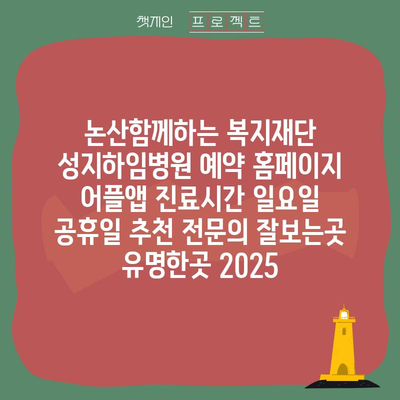 논산함께하는 복지재단 성지하임병원 예약 홈페이지 어플앱 진료시간 일요일 공휴일 추천 전연락 잘보는곳 유명한곳 2025 에 대해 자주 묻는 질문 TOP 5