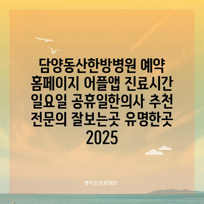 담양동산한방병원 예약 홈페이지 어플앱 진료시간 일요일 공휴일한의사 추천 전연락 잘보는곳 유명한곳 2025 에 대해 자주 묻는 질문 TOP 5