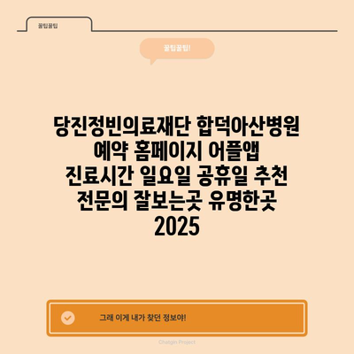 당진정빈의료재단 합덕아산병원 예약 홈페이지 어플앱 진료시간 일요일 공휴일 추천 전연락 잘보는곳 유명한곳 2025 에 대해 자주 묻는 질문 TOP 5