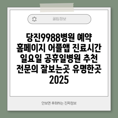 ✅ 당진9988병원의 진료시간과 예약 방법을 자세히 알아보세요.