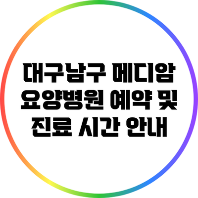 ✅ 대구남구 메디암 요양병원의 예약 방법과 진료 시간을 자세히 알아보세요.