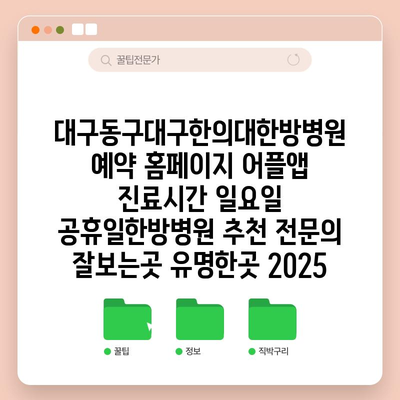 대구동구대구한의대한방병원 예약 홈페이지 어플앱 진료시간 일요일 공휴일한방병원 추천 전연락 잘보는곳 유명한곳 2025 에 대해 자주 묻는 질문 TOP 5