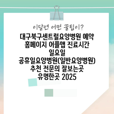 ✅ 대구북구센트럴요양병원의 진료시간과 예약 방법을 자세히 알아보세요.