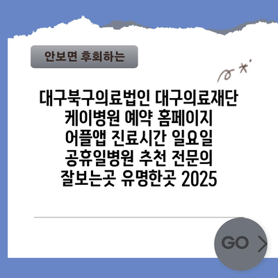 대구북구의료법인 대구의료재단 케이병원 예약 홈페이지 어플앱 진료시간 일요일 공휴일병원 추천 전연락 잘보는곳 유명한곳 2025 에 대해 자주 묻는 질문 TOP 5