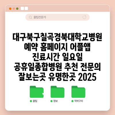 대구북구칠곡경북대학교병원 예약 홈페이지 어플앱 진료시간 일요일 공휴일종합병원 추천 전연락 잘보는곳 유명한곳 2025 에 대해 자주 묻는 질문 TOP 5