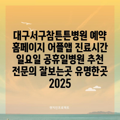 대구서구참튼튼병원 예약 홈페이지 어플앱 진료시간 일요일 공휴일병원 추천 전연락 잘보는곳 유명한곳 2025 에 대해 자주 묻는 질문 TOP 5