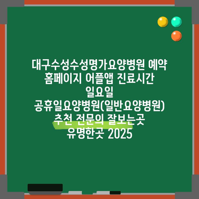 대구수성수성명가요양병원 예약 홈페이지 어플앱 진료시간 일요일 공휴일요양병원(일반요양병원) 추천 전연락 잘보는곳 유명한곳 2025 에 대해 자주 묻는 질문 TOP 5
