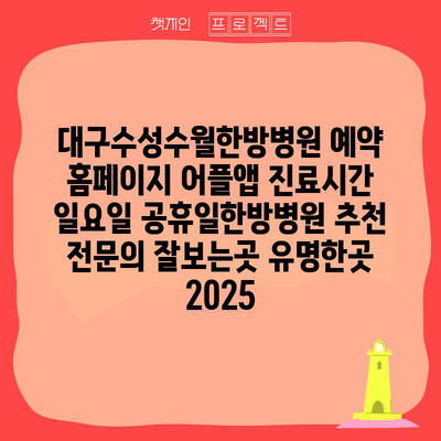 대구수성수월한방병원 예약 홈페이지 어플앱 진료시간 일요일 공휴일한방병원 추천 전연락 잘보는곳 유명한곳 2025 에 대해 자주 묻는 질문 TOP 5
