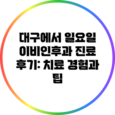 일요일에 대구에서 이비인후과 진료를 받는 것은 정말 유익한 선택이었던 것 같아요. 일상에서 느끼는 불편한 증상으로 인해 방치하지 마시고, 필요할 경우 꼭 진료를 받는 것이 중요해요.