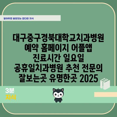 대구중구경북대학교치과병원 예약 홈페이지 어플앱 진료시간 일요일 공휴일치과병원 추천 전연락 잘보는곳 유명한곳 2025 에 대해 자주 묻는 질문 TOP 5