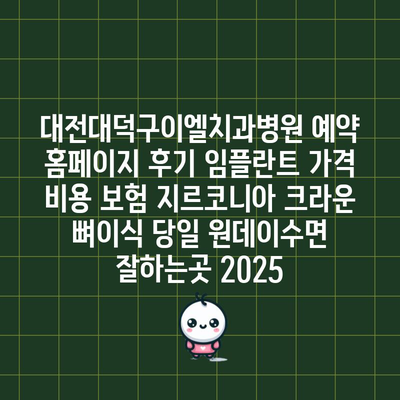 대전대덕구이엘치과병원 예약 홈페이지 후기 임플란트 가격 비용 보험 지르코니아 크라운 뼈이식 당일 원데이수면 잘하는곳 2025 에 대해 자주 묻는 질문 TOP 5