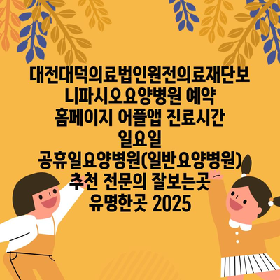 대전대덕의료법인원전의료재단보니파시오요양병원 예약 홈페이지 어플앱 진료시간 일요일 공휴일요양병원(일반요양병원) 추천 전연락 잘보는곳 유명한곳 2025 에 대해 자주 묻는 질문 TOP 5