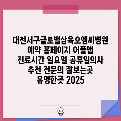 대전서구글로벌삼육오엠씨병원 예약 홈페이지 어플앱 진료시간 일요일 공휴일의사 추천 전연락 잘보는곳 유명한곳 2025 에 대해 자주 묻는 질문 TOP 5