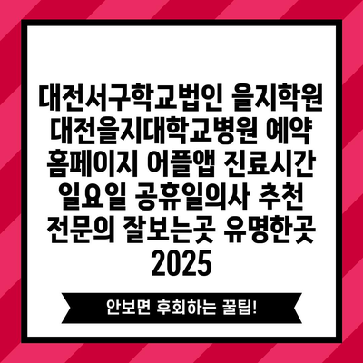대전서구학교법인 을지학원 대전을지대학교병원 예약 홈페이지 어플앱 진료시간 일요일 공휴일의사 추천 전문의 잘보는곳 유명한곳 2025