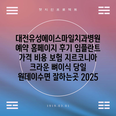 대전유성에이스마일치과병원 예약 홈페이지 후기 임플란트 가격 비용 보험 지르코니아 크라운 뼈이식 당일 원데이수면 잘하는곳 2025 에 대해 자주 묻는 질문 TOP 5