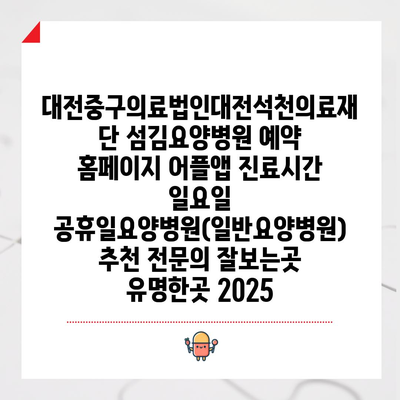 대전중구의료법인대전석천의료재단 섬김요양병원 예약 홈페이지 어플앱 진료시간 일요일 공휴일요양병원(일반요양병원) 추천 전연락 잘보는곳 유명한곳 2025 에 대해 자주 묻는 질문 TOP 5
