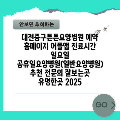 ✅ 대전중구튼튼요양병원의 진료시간과 예약 방법을 알아보세요.