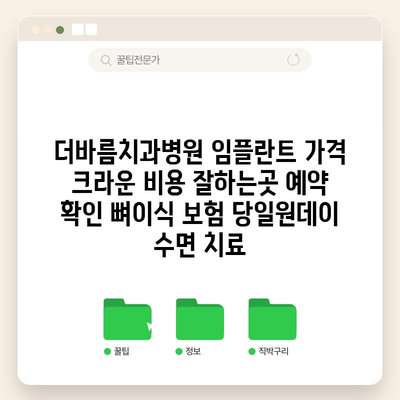 더바름치과병원 임플란트 가격 크라운 비용 잘하는곳 예약 확인 뼈이식 보험 당일원데이 수면 치료 에 대해 자주 묻는 질문 TOP 5