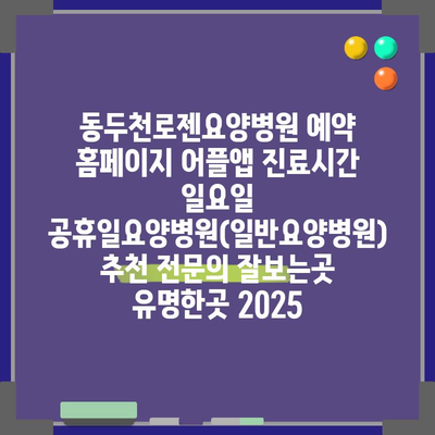 동두천로젠요양병원 예약 홈페이지 어플앱 진료시간 일요일 공휴일요양병원(일반요양병원) 추천 전연락 잘보는곳 유명한곳 2025 에 대해 자주 묻는 질문 TOP 5