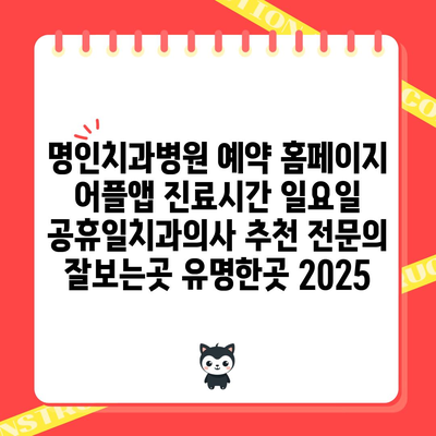 명인치과병원 예약 홈페이지 어플앱 진료시간 일요일 공휴일치과의사 추천 전연락 잘보는곳 유명한곳 2025 에 대해 자주 묻는 질문 TOP 5
