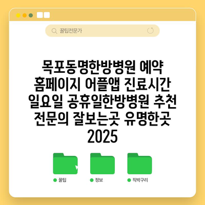✅ 목포동명한방병원의 진료시간과 예약 방법을 지금 바로 알아보세요.