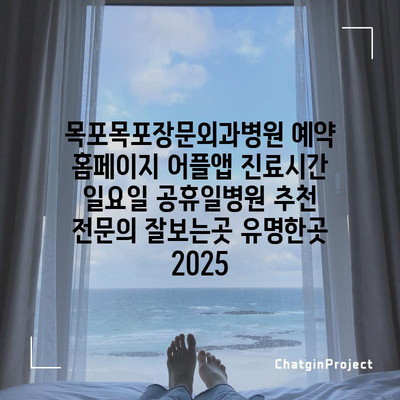 ✅ 목포목포장문외과병원의 진료시간과 예약 방법을 지금 바로 확인해 보세요.