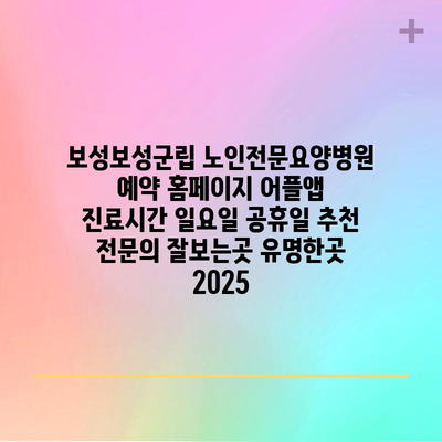 보성보성군립 노인전문요양병원 예약 홈페이지 어플앱 진료시간 일요일 공휴일 추천 전연락 잘보는곳 유명한곳 2025 에 대해 자주 묻는 질문 TOP 5