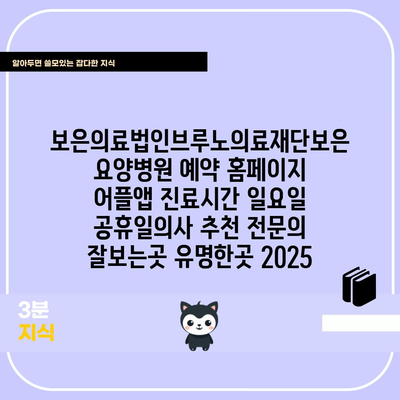 보은의료법인브루노의료재단보은요양병원 예약 홈페이지 어플앱 진료시간 일요일 공휴일의사 추천 전연락 잘보는곳 유명한곳 2025 에 대해 자주 묻는 질문 TOP 5