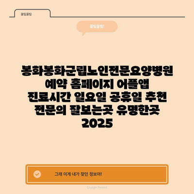 ✅ 봉화군립노인전문요양병원의 진료시간과 예약 방법을 알아보세요.