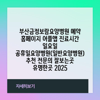 부산금정보람요양병원 예약 홈페이지 어플앱 진료시간 일요일 공휴일요양병원(일반요양병원) 추천 전연락 잘보는곳 유명한곳 2025 에 대해 자주 묻는 질문 TOP 5