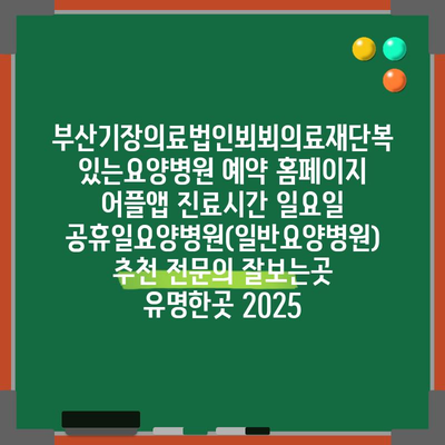 부산기장의료법인뵈뵈의료재단복있는요양병원 예약 홈페이지 어플앱 진료시간 일요일 공휴일요양병원(일반요양병원) 추천 전연락 잘보는곳 유명한곳 2025 에 대해 자주 묻는 질문 TOP 5